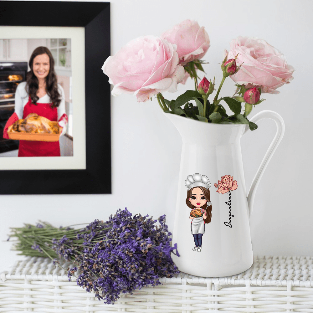 | Style | Personalized Cooking Mama Clipart Ceramic Vase with Birth Flower and Name |