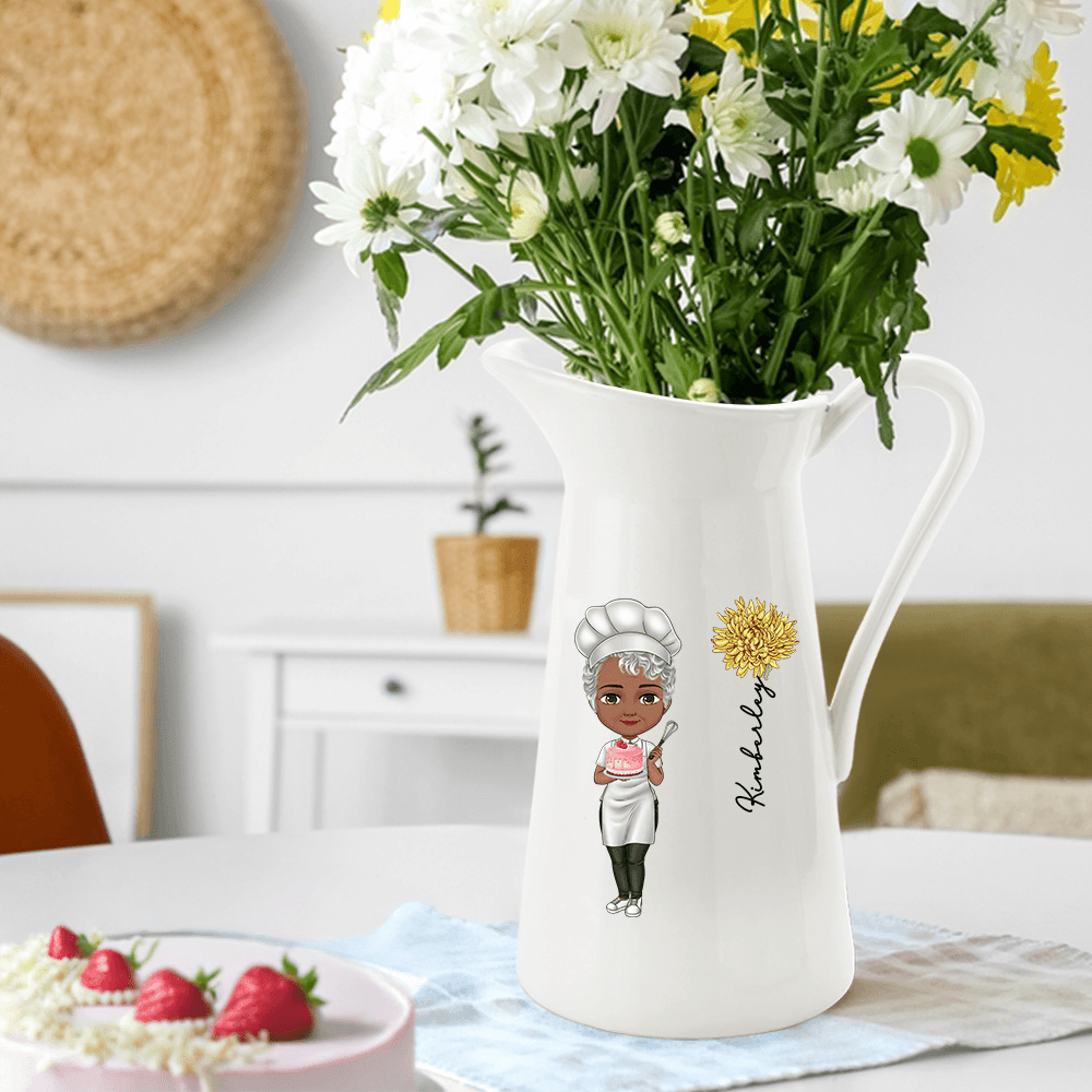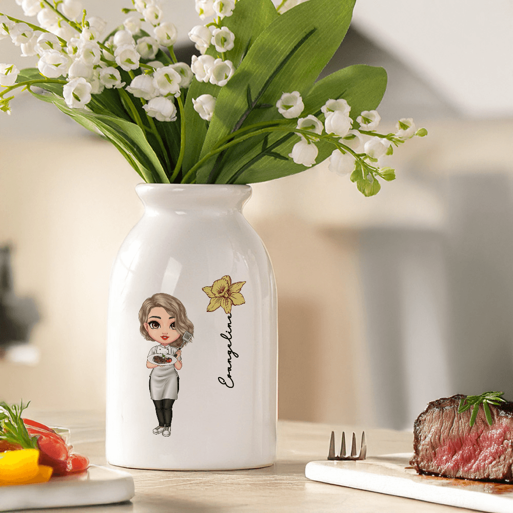 Custom Design - This delightful ceramic vase allows you to create a one-of-a-kind piece by personalizing it with a unique cooking mama cartoon character. You can choose the character's appearance, along with a birth flower that holds special meaning, and add a name for a truly personal touch.